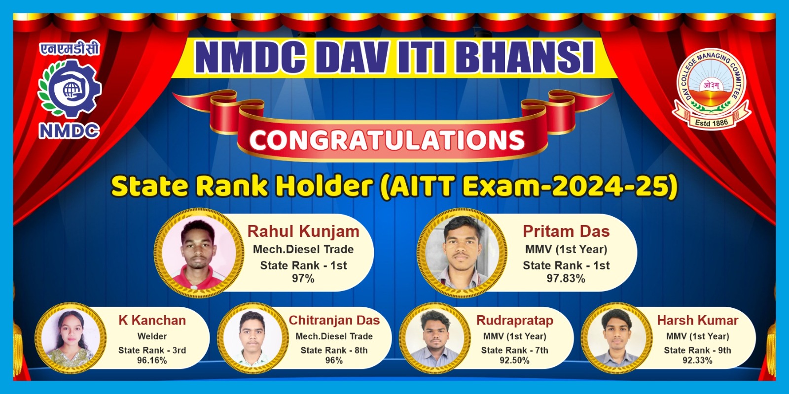 It is a big achievement for the institute as 6 trainees have secured positions in the top 10 of the state list in the AITT Exam 2025, with ranks 1st, 2nd, 3rd, 7th, 8th, and 9th.
